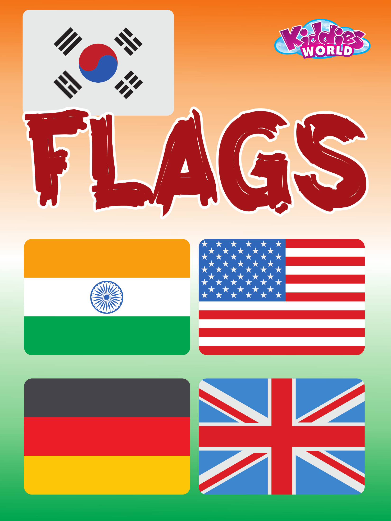 This educational journey takes young readers around the globe through the colorful and meaningful world of national flags. Featuring flags from major countries including South Korea, India, the United States, Germany, and the United Kingdom, this book introduces children to different nations while teaching about symbols, colors, and the stories behind flag designs.